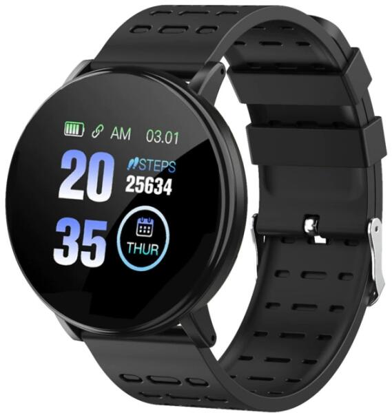 A 119s okosóra fekete színben egy modern eszköz az egészségének és fizikai aktivitásainak nyomon követésére. Elegáns és minimalisztikus kialakítása miatt ideális a mindennapi viselésre. Kényelmes szilikonszíjat, nagy felbontású kijelzőt kínál, amelyen a megjelenő adatok jól láthatók.